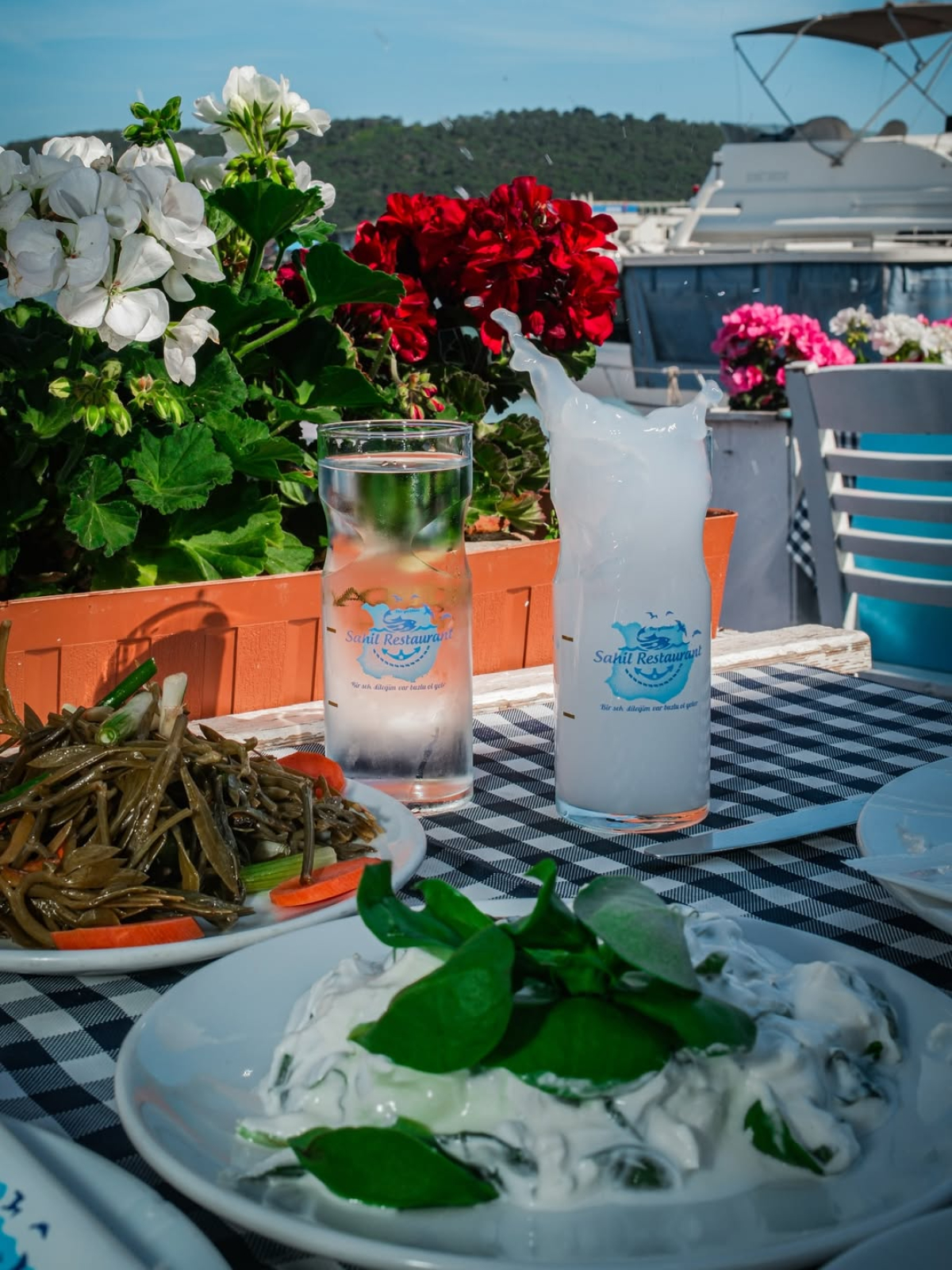 Classic pairings complete the dining experience. The most common drink with fish is rakı, Turkey’s iconic anise-flavored spirit, similar to Greek ouzo and known for its strong alcohol content. The table is further enriched by traditional mezes such as lakerda, atom, shrimp, haydari, hummus, and Gavurdağı salad. With its seaside view and authentic atmosphere, Sahil Restaurant remains a staple of Burgazada dining.